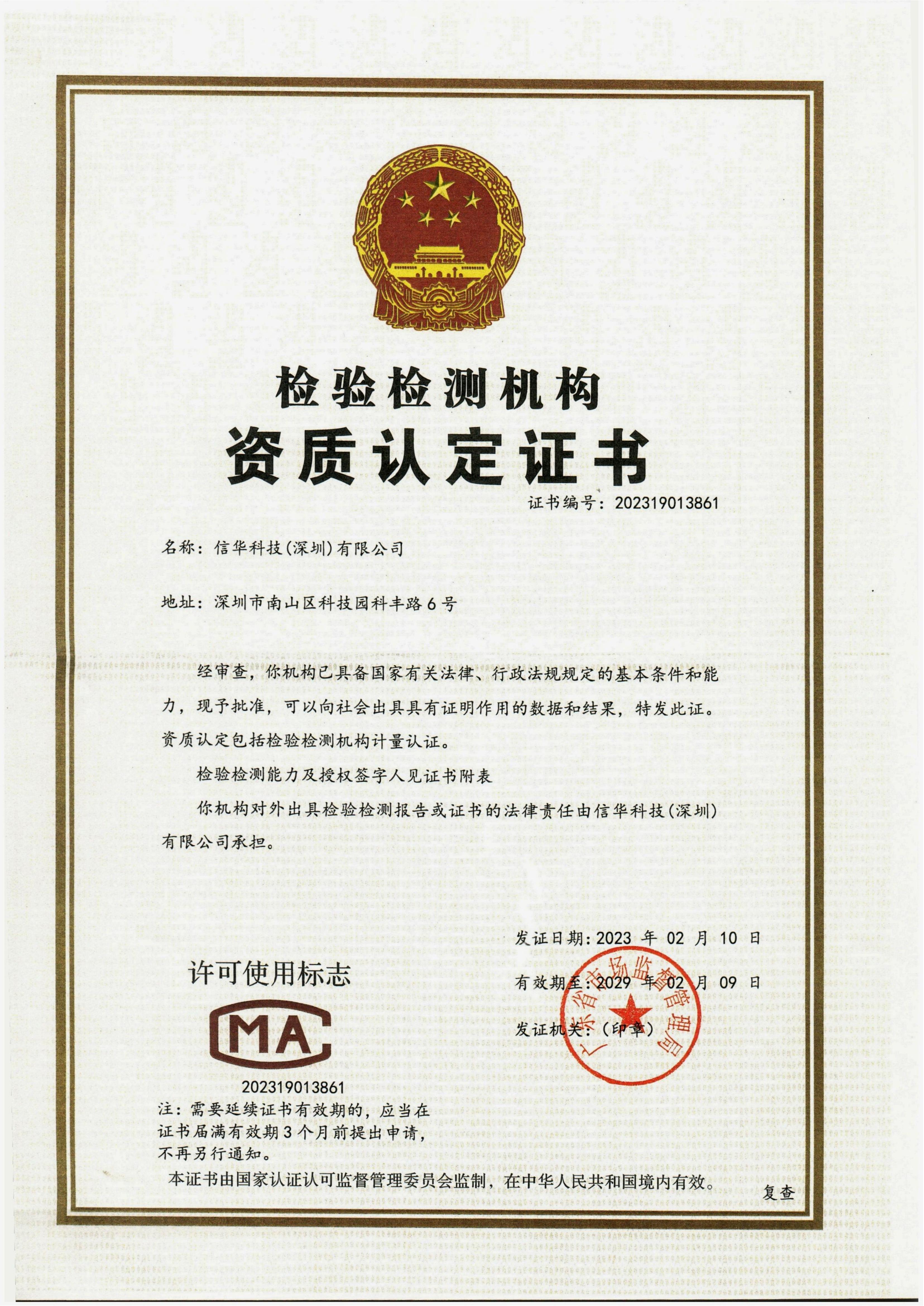 關於授權證書 > 信華科技(深圳)有限公司