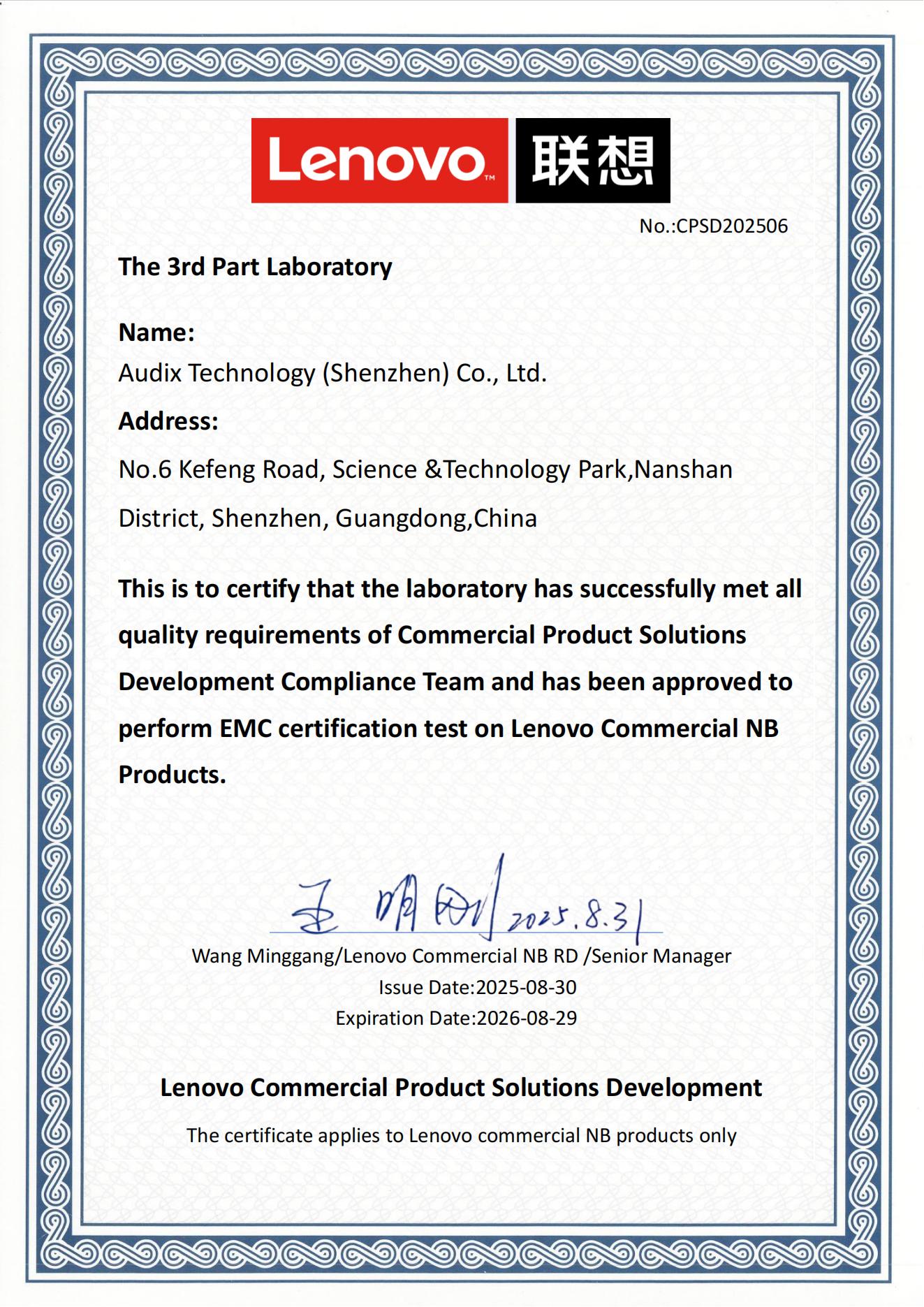 Lenovo證書