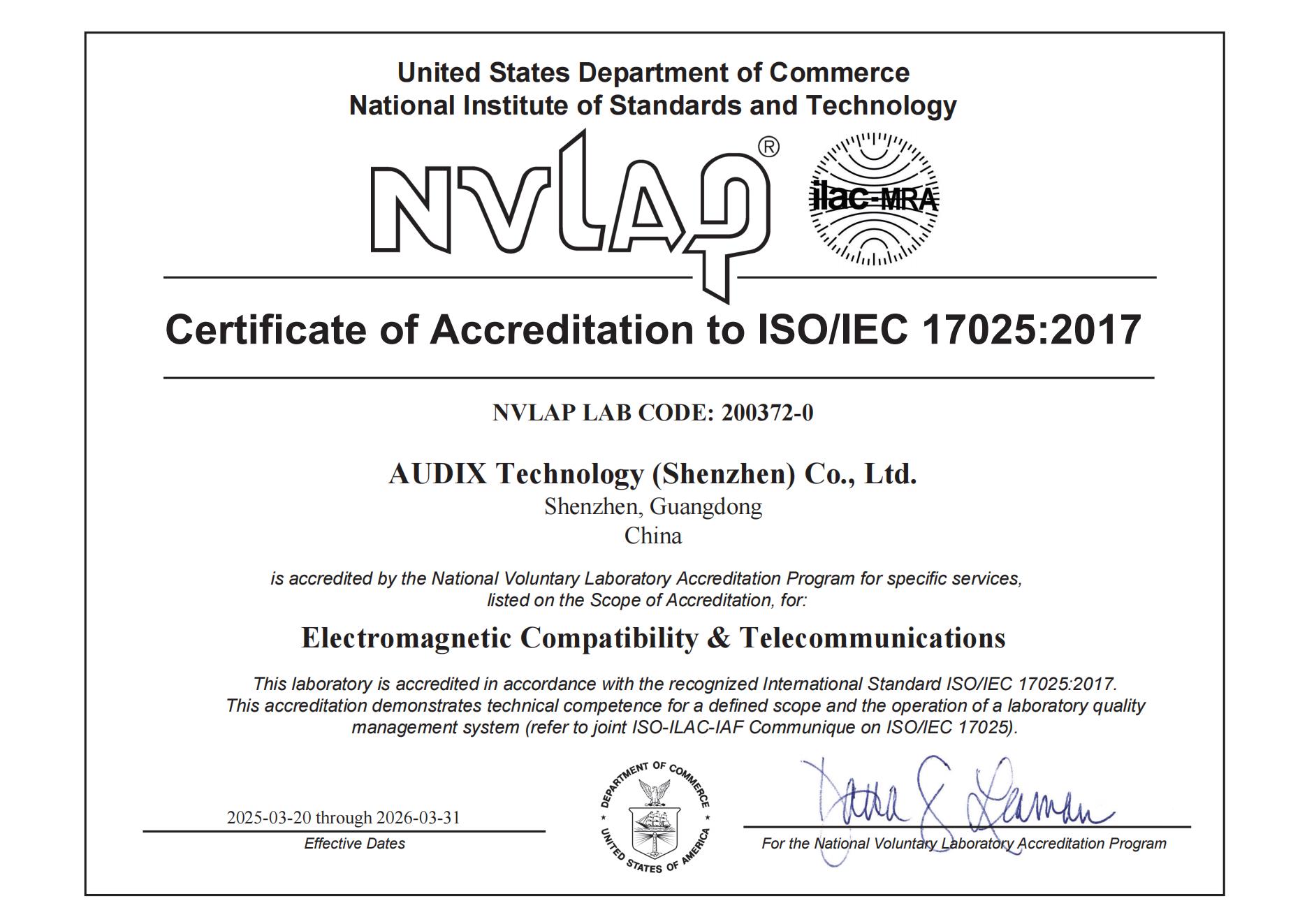NVLAP證書(Lab Code. 200372-0)